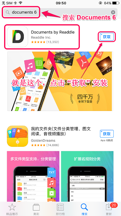 一、在App Store里,搜索并下载Documents 6 这个软件