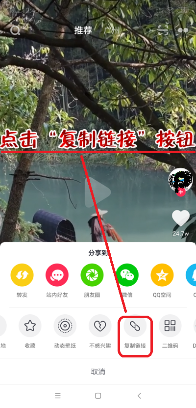 四、把在抖音上复制的链接粘贴到输入框里,然后点击 “ 解析 ” 按钮